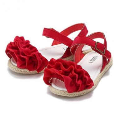 ボリュームのあるフリルで足もとを華やかに演出するサンダルです。女の子らしいデザインでありながら、フラットなソールで歩きやすいのもうれしいポイント♪ ストラップは脱ぎはきしやすい面ファスナー仕様です。ガーリーにはもちろん、カジュアルコーデのワンポイントとしても活躍します。