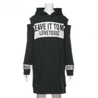 ラブトキシック Lovetoxic 【50%OFF】肩開き配色切り替えロゴ入り裏毛パーカーワンピース