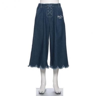 裾フリンジデニムガウチョパンツ【50%OFF】