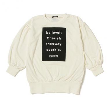 モダンなボックスロゴプリント入りで、ちょっぴり大人っぽく決まるトレーナーです。ギャザー入りのふんわりとしたスリーブが女の子らしく見せるポイント♪ フチをリブ素材で切り替え、メリハリのあるシルエットに。両側ポケットつき。