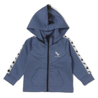 恐竜デザインの個性あふれるルックスで、コーディネートのポイントになるパーカーです。胸元の刺しゅうや、イラスト入りの袖ラインも目を引くアクセント♪ フード部分は取り外せる仕様なので、コーディネートやシーンに応じてアレンジが可能です。同シリーズのパンツも展開しています。品番:5383115