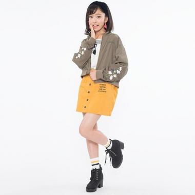 ミリタリー風のデザインにフラワー刺しゅうをほどこして、絶妙な甘辛バランスに仕上げたブルゾンです。ボーイッシュな着こなしからガーリーコーデまで、幅広いテイストのスタイルにマッチするアイテム♪ ※ボトムスは参考商品です・モデルサイズ153cm・着用サイズ160cm