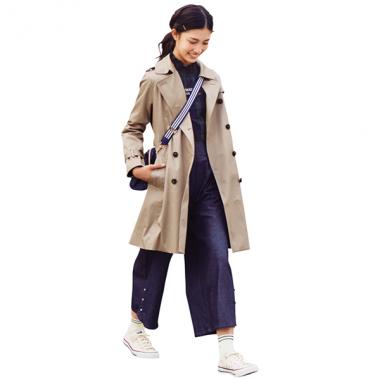 スタイルをハンサムにまとめ上げる、マニッシュなトレンチコートです。肩のエポーレットや胸元のガンフラップなど、雰囲気のあるディテールがポイント♪ 要所のベルトが印象を引きしめます。内側にキルティングライナーがついており、ロングシーズン活躍するアイテムです。※ボトムスは参考商品です