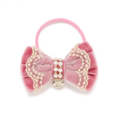 アクセサリー感覚でつけられるエレガントなディテールが印象的なヘアポニーです。リボンモチーフにチュールレースやフェイクパール、ブランドイニシャルのハート型プレートをつけたリッチなルックス。ヘアスタイルにオンするだけで簡単に華やかさをプラスできるアイテムです。