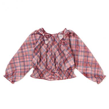 メゾ ピアノ mezzo piano オフショルチェック柄ショートブラウス