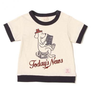 ジェントルマンなワンちゃんが可愛らしいTシャツです。要所をはっきりとしたカラーで切り替えアクセントをプラス。独特な風合いのスラブ地を使用したなんともおしゃれなアイテムです。袖口と裾は伸縮性のあるリブを採用し、体にしっかりフィットします。※80、90サイズのみ肩開き