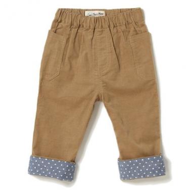 シャツコール生地を使用したシーズンムード満点のイージーパンツです。裾をロールアップさせるとスター柄が現れるお洒落なデザインが魅力。両サイドにはポケット付き。室内からお出かけシーンまで、幅広く対応する1本です。