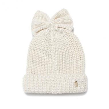 装いに女の子らしいアクセントを加えてくれるニット帽です。大きなリボンがキュートなポイント♪ きらりと輝くロゴプレートを添えて、リッチ感を演出してくれます。防寒具としてはもちろん、コーデのワンポイントとしても重宝しそうです。