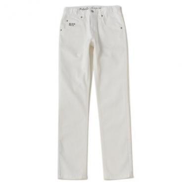 シンプルでスタイリングしやすく、デイリーコーデの定番アイテムとして活躍するスキニーパンツです。配色のロゴ刺しゅうがさりげないアクセント。内側へホック式の留め具を配したウエストもポイントです。※アジャスターゴムでウエスト調節可能
