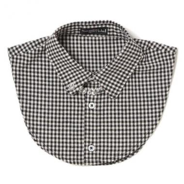首元へネックレス風のビジューチェーンをあしらった、華やかな雰囲気ただようつけ衿です。白は無地、黒はチェック柄と、カラーによって異なるパターンを採用。チェーンは取り外し可能なので、コーデに合わせてアレンジ頂けます。