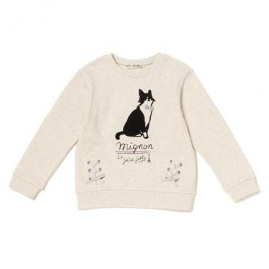 ポンポネット ジュニア pom ponette junior 【50%OFF】【キッズサイズ向け】ネコモチーフ裾レースアップ裏毛トレーナー