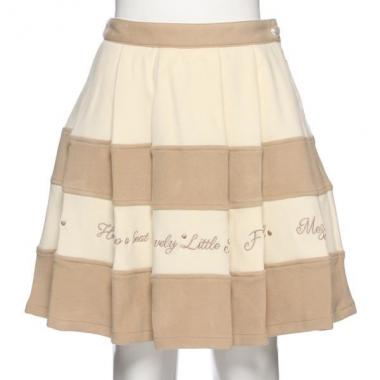 大胆な切り替えでボーダー柄を表現した、存在感あふれるスカートです。ふわりとボリュームのあるフレアシルエットがコーデを華やかに演出♪ ロゴ刺しゅうをぐるりとほどこして、個性的に仕上げたアイテムです。右側ポケットつき。※アジャスターゴムでウエスト調節可能