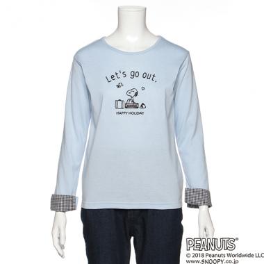 PEANUTSコラボ 袖折り返しスヌーピー刺しゅうTシャツ