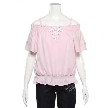 フレア袖にシェルやリボンなどを刺しゅうしたフェミニンなオフショルダーブラウスと、肩ストラップにレースをあしらい女の子らしく仕上げたキャミソールです。明るくキレイなカラー展開も注目したいところ♪ それぞれ単体でも着回せます。※ボトムスは参考商品です