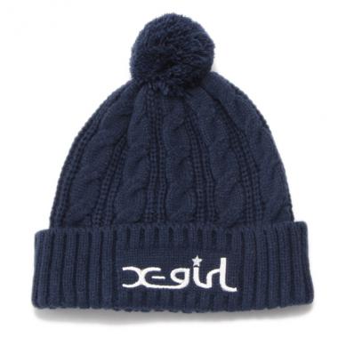 エックスガールステージス X-girl Stages ポンポンつきロゴケーブルニット帽