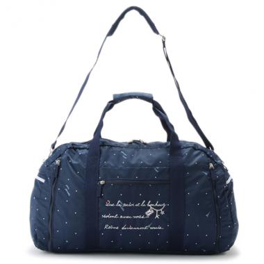 ピンドットや小さめのロゴ刺しゅうが大人っぽい旅行ボストンバッグです。ポケット口のパイピングがちょっぴり涼しげなアクセント♪ 荷物が多くなった際もサイドのファスナーを開けることができます。肩への負担を軽減するパットつきなのもうれしいポイントです。