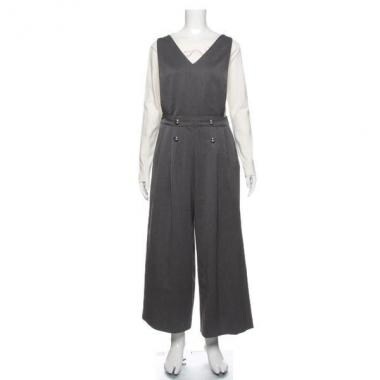 ウエストボタンがポイントとなったサロペットです。トップは取り外しが可能な2WAY仕様で仕上げました! ストレッチの効いた着心地も快適なアイテムです。アジャスターゴムでウエスト調節可能。インナーは参考商品です。※キッズサイズあり、品番:4873120・モデルサイズ159cm・着用サイズ160cm