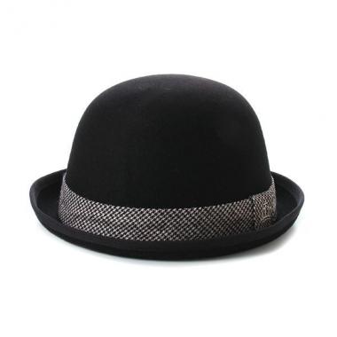 丸いシルエットが上品なスタイリングにぴったりのボーラーハットです。フォーマルシーンにもマッチしそうなきちんと感のあるデザイン。つばがくるんと上に丸まっているので顔もはっきり見えて好印象なコーディネートにまとまります。トラッド感のある千鳥チェックのリボンには、キラキラとしたシルバーの刺しゅうでブランドロゴとクラウンモチーフをつけ、ガーリーなポイントにしました。