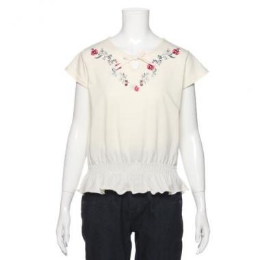 花刺しゅう入りシャーリングブラウス【50%OFF】