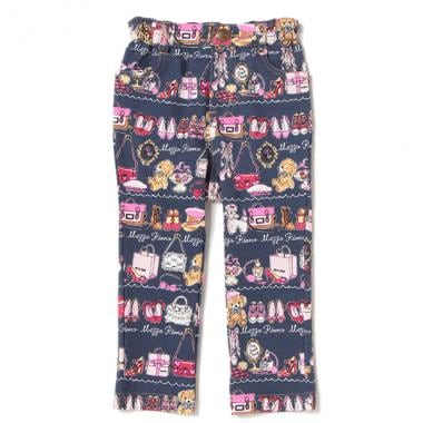 おしゃれなヒール靴やバッグ、ぬいぐるみやスイーツなど女の子が見てワクワクするようなモチーフをたっぷりプリントしたロングパンツです。バックのハート型ポケットで後ろ姿もキュートに演出♪ プレーンなトップスとの合わせで柄を引き立てるスタイルがおすすめ。ウエストはアジャスターゴムで調節可能です。