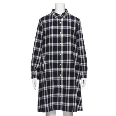 ほんのり起毛感のあるチェック柄生地で仕立てた、カジュアル感ただようシャツワンピースです。共布のリボンベルトがシルエットに女の子らしいメリハリをプラス♪ 衿のさりげないロゴ刺しゅうもおしゃれ心をくすぐります。
