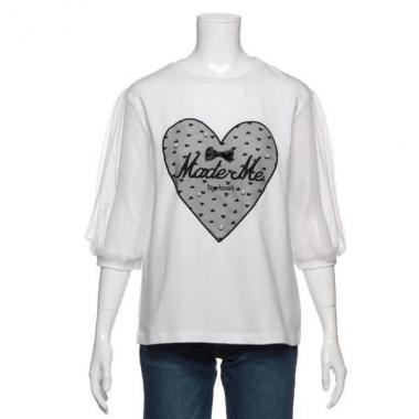 バイ ラビット by LOVEiT 【50%OFF】ハートアップリケつき袖チュール切り替えTシャツ