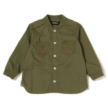 胸元に刺しゅうをあしらったシャツです。ネックや袖口にはリブ、前立てはスナップボタンとブルゾン風のデザインを採用しました。サイドのガゼットの生地を変えさりげないアクセントも。さらっと羽織るだけでこなれ感のでるアイテムです! カーキは無地、ブルーはチェックと、カラーによって異なるパターンを採用しました。