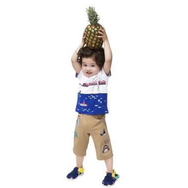 海と電車のコントラストが絶妙なTシャツです。水中を走っているようなバックプリントも印象的♪ 袖口を折り上げると柄テープがのぞく仕掛けで、コーディネートに合わせて変化を楽しめます。※80、90サイズのみ肩開き・モデルサイズ94cm・着用サイズ90cm