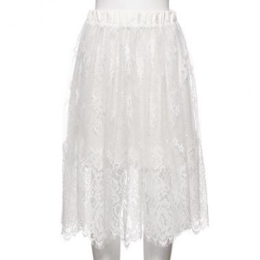 総レースで仕立てた華やかなスカートです。ウエスト切り替えにギャザーを入れて、フォルムに程よいボリューム感をプラス。膝下丈の大人っぽい雰囲気も魅力です。インのスカートは丈を短くして、レースの透け感を活かした軽やかなルックスに。ウエストゴム入りです。