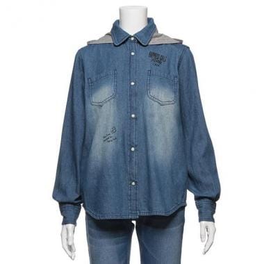 フードつきロゴプリント入りデニムシャツ【50%OFF】