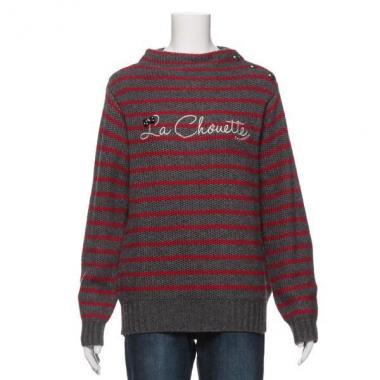 ロゴ刺しゅう入りボーダー柄ボトルネックニット【50%OFF】