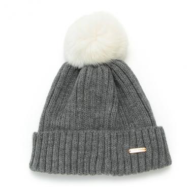 プティマイン petit main フェイクファーポンポンつきニット帽