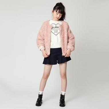 モコモコとしたボアの風合いにポップなムードがただようジャケットです。デザインをシンプルにまとめたこちらは、素材感が際立って◎。キラリと輝くメタルプレートにはブランドロゴが刻まれています。両側ポケットつき。※ボトムスは参考商品です・モデルサイズ164cm・着用サイズ150cm