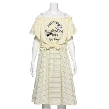 ブルークロス ガールズ BLUECROSS girls 【50%OFF】オフショルダーTシャツ×ボーダーキャミワンピースセット