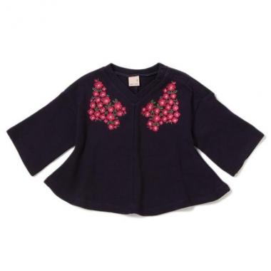 愛らしい小花柄の刺しゅうが目を引くVネックトップスです。裾をフレアにして立体感のあるシルエットに仕上げました♪ 中央の切り替えも印象的。ディテールにこだわったオシャレな一着です。※80、90サイズのみ肩開き