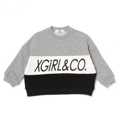 エックスガールステージス X-girl Stages 【50%OFF】ロゴ入り配色デザインクルーネック裏毛トレーナー