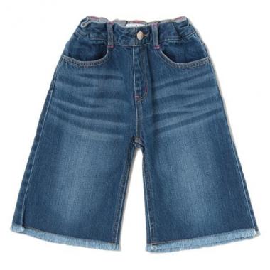 スター形のバックポケットが後ろ姿をおしゃれに演出するデニムパンツです。存在感のあるワイドシルエットで、コーデの主役として活躍するアイテム♪ サクッと切りっぱなした裾も個性が光ります。内側にお名前を記入できるタグつきです。※アジャスターゴムでウエスト調節可能