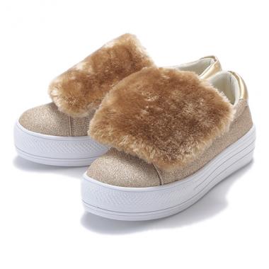 フェイクファーつきグリッタースニーカー