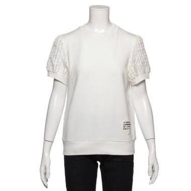 透け感のある軽やかなチェック生地と、無地の裏毛素材を組み合わせたトレーナーです。ハート形のロゴ入りモチーフはフェミニンなアクセント♪ 控えめな開きのネックが品良く見せるポイントです。※ボトムスは参考商品です