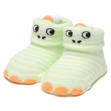 キョロキョロとした目で愛嬌を振りまく恐竜モチーフのカップソックス。つま先には爪のデザインをほどこしユニークに仕上げました。ボーダーとの組み合わせでPOPな雰囲気に。足裏にはしっかりと滑り止めがほどこされています。