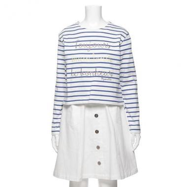 ロゴ刺しゅう入りボーダーTシャツ×ウエスト切り替えドッキングワンピースセット【50%OFF】