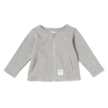 後ろロゴ入りノーカラー裏毛ジップカーディガン