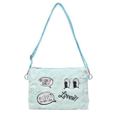 クラッチとしてもショルダーとしても使える、うれしい2WAY仕様のバッグです。吹き出しや瞳を大胆に刺しゅうした、ポップでコミカルなデザインがインパクト大♪ ふわふわなフェイクファー仕立てで、コーデのポイントになるアイテムです。