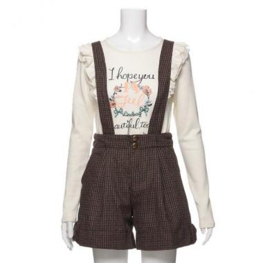 落ち着いたトーンのチェック柄で、大人っぽく着こなせるつり付きショートパンツです。裾サイドに配した同布のリボン飾りが程よい甘さをプラス♪ 燻したようなフロントボタンも目を引くアクセントです。ウエストはアジャスターゴムでサイズ調整が可能。※インナーは参考商品です
